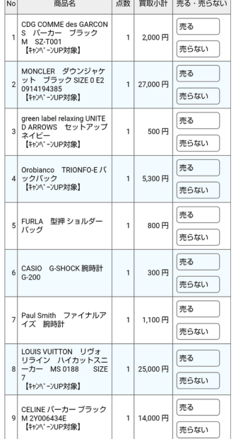 30着以上買い取ってもらいました。しっかり査定してくれてそこそこ満足の金額になりました。
