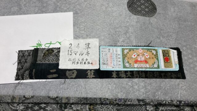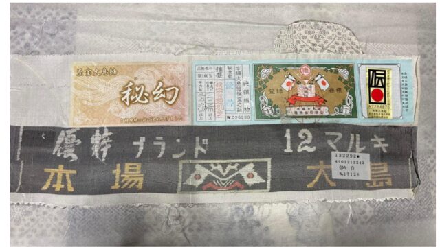 大島紬の場合、証紙に「12マルキ・15マルキ」の記載があれば金額が高くなります。希少価値が高いため高額買取も期待できます。