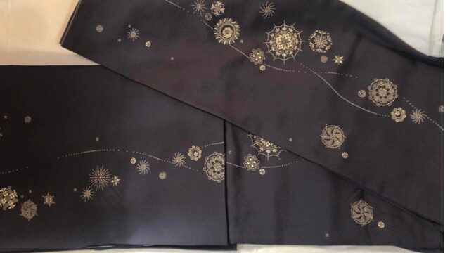 表面に現れる節(ふし)が独特の光沢と深みを与え、古くから婚礼衣装や正式な和装に用いられ、その耐久性と経年変化する味わいは愛好家に評価されています。手間のかかる手仕事ゆえに希少で高級品とされます。